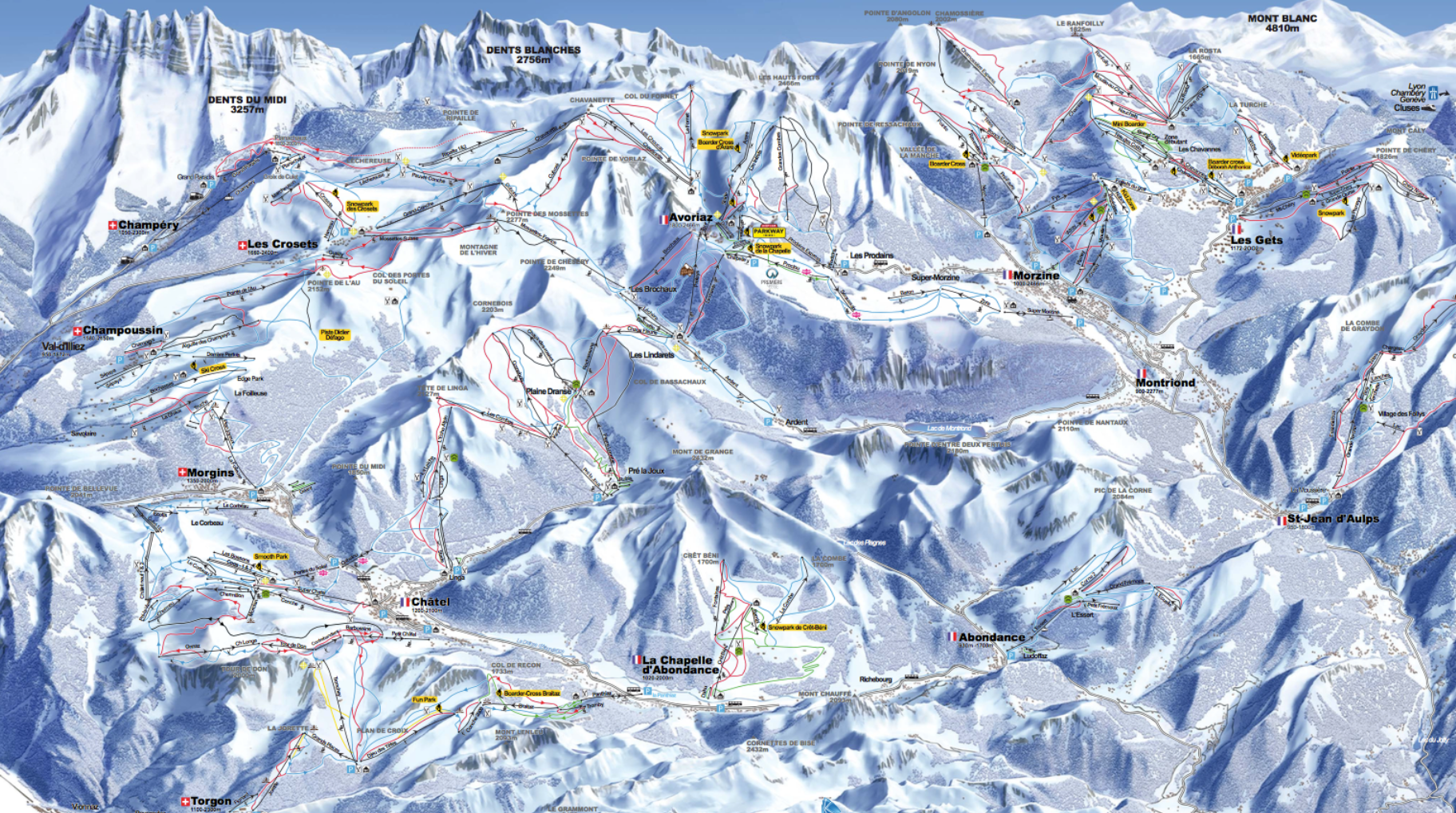 The Portes du Soleil is a fantastic winter playground for skiers of all levels. With over 650km of ski pistes and many lifts within a few minutes journey of the apartment, there are endless choices each day for a fun filled ski holiday staying at La Corniche, at the very heart of the ski area. [Click image above for Portes du Soleil piste map]